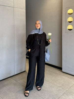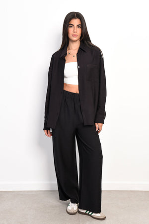 Two Piece Sets Women Elegant Shirt And Wide Leg Pants Made with high-quality materials, this set ensures both style and comfort. Expertly designed for a casual yet trendy look. Upgrade your wardrobe with this must-have set.