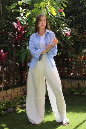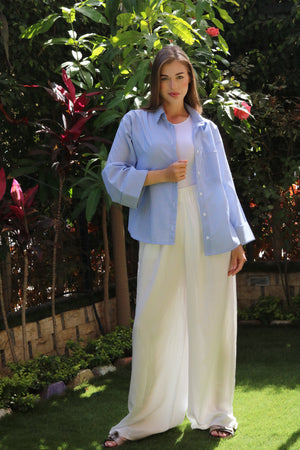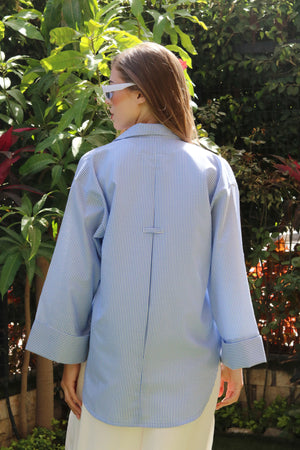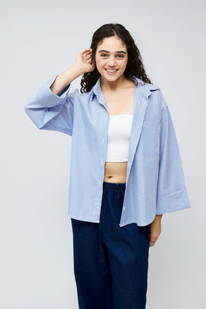 Casual Striped Oversized Shirt- Baby Blue