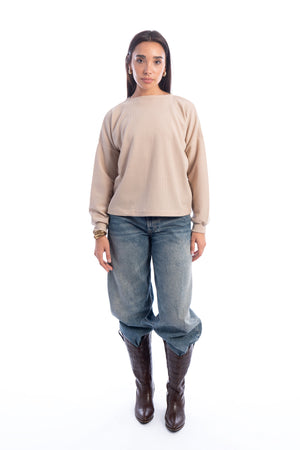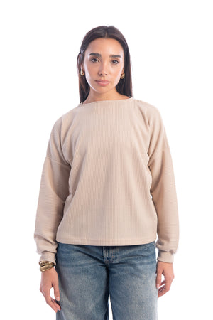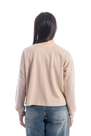 | Solid Crew Neck Knitted Top, Elegant Long Sleeve Crop Sweater Lengh 56 CM |