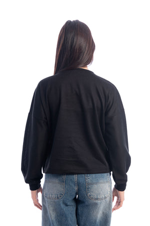 | Solid Crew Neck Knitted Top, Elegant Long Sleeve Crop Sweater Lengh 56 CM |
