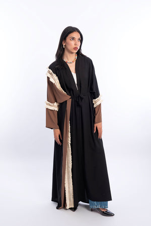 Tow Tone Open Kaftan - Black and Brown